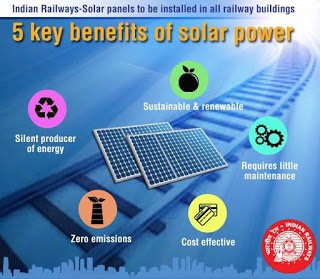 Indian Railway decided to launch many passenger amenities in the Railway stations as pat of modernization and revamping of Stations and Station premises. The new initiatives among this are installation of solar panels in the railway stations. Following are the details of Solar Power in Indian Railway. Indian Railway decided to use solar power as an alternate Sources of Energy in Railway Stations and Railway started to install solar panels in all Railway buildings. There are many benefits for using solar power.